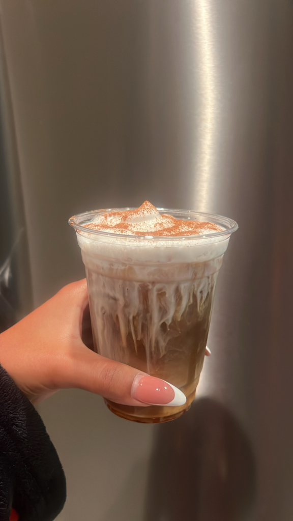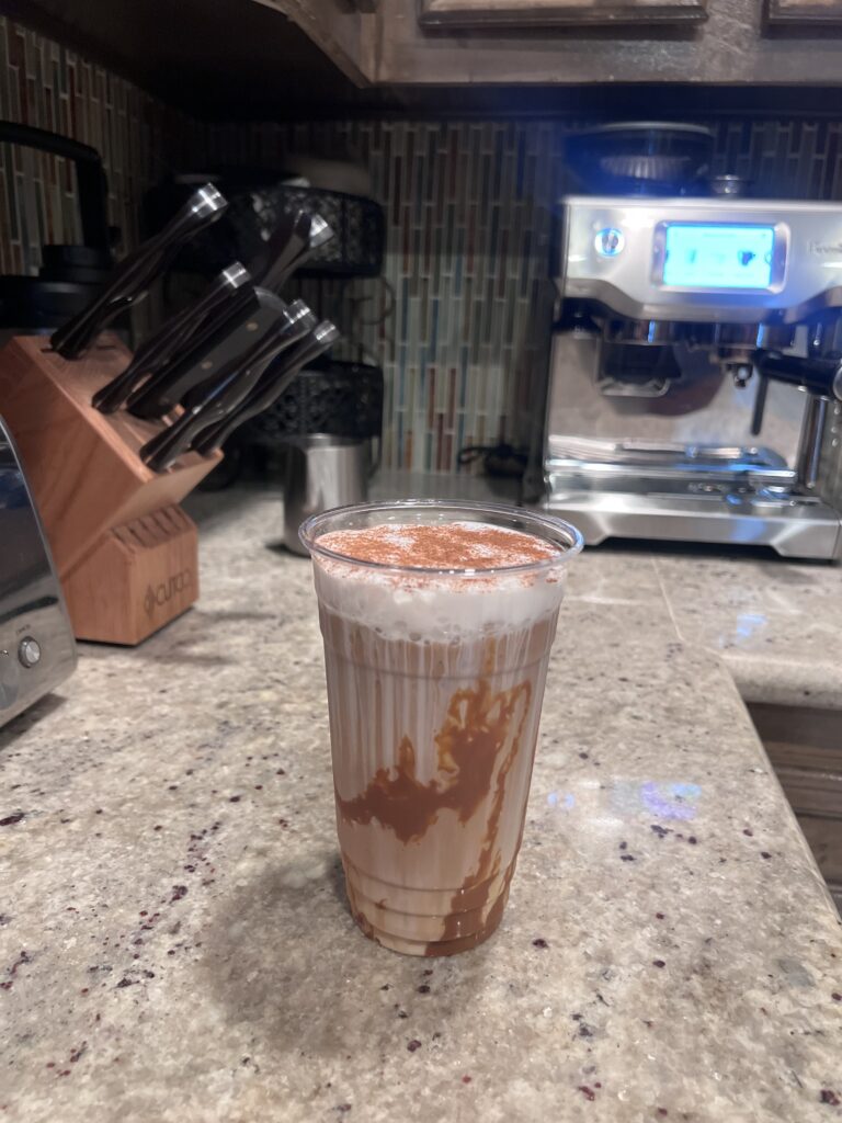 Here’s where we add the fun stuff. Drizzle a bit of caramel sauce inside the cup, top your drink with a dollop of vanilla cold foam, and sprinkle a little cinnamon on top. I promise you’ll feel like a barista in your own kitchen.
